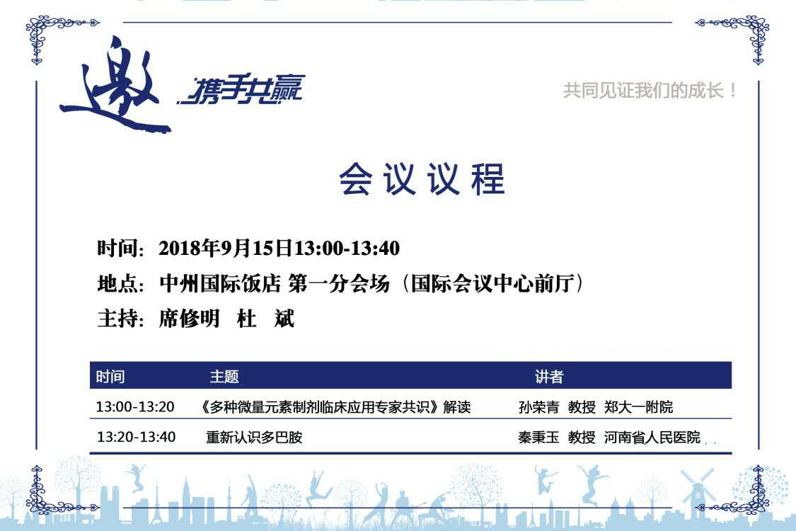 2018年9月7日-9日,由中华医学会肠外肠内营养学分会主办,安徽医科大学第三附属医院(合肥市第一人民医院)承办,安徽省医学会肠外肠内营养学分会药学学组、合肥市医学会临床药学分会及合肥市医学会肠外肠内营养学分会协办的“第二届临床营养药学论坛”在安徽省合肥融侨皇冠假日酒店举行。本次会议邀请了四川省人民医院江华教授对《多种微量元素制剂临床应用专家共识》进行了解读。来自全国各地的200余名相关专家济济一堂,共享学术饕餮盛宴。