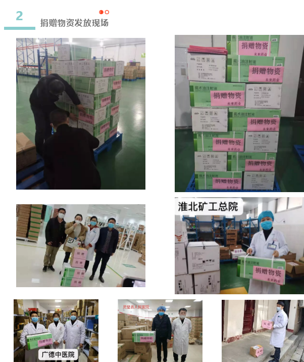 “新冠肺炎”疫情发生以来,合肥荣耀体育官方站网页版先后多次向安徽省红十字基金会捐赠药品莪术油注射液、注射用盐酸多巴胺、多种微量元素注射液,总价值1186224Ԫ,定向用于安徽省内一线医护人员医疗救助工作。与此同时,合肥未来药业有限公司也向湖北省疫区医院捐赠了相关药品,支援湖北疫区医疗一线。