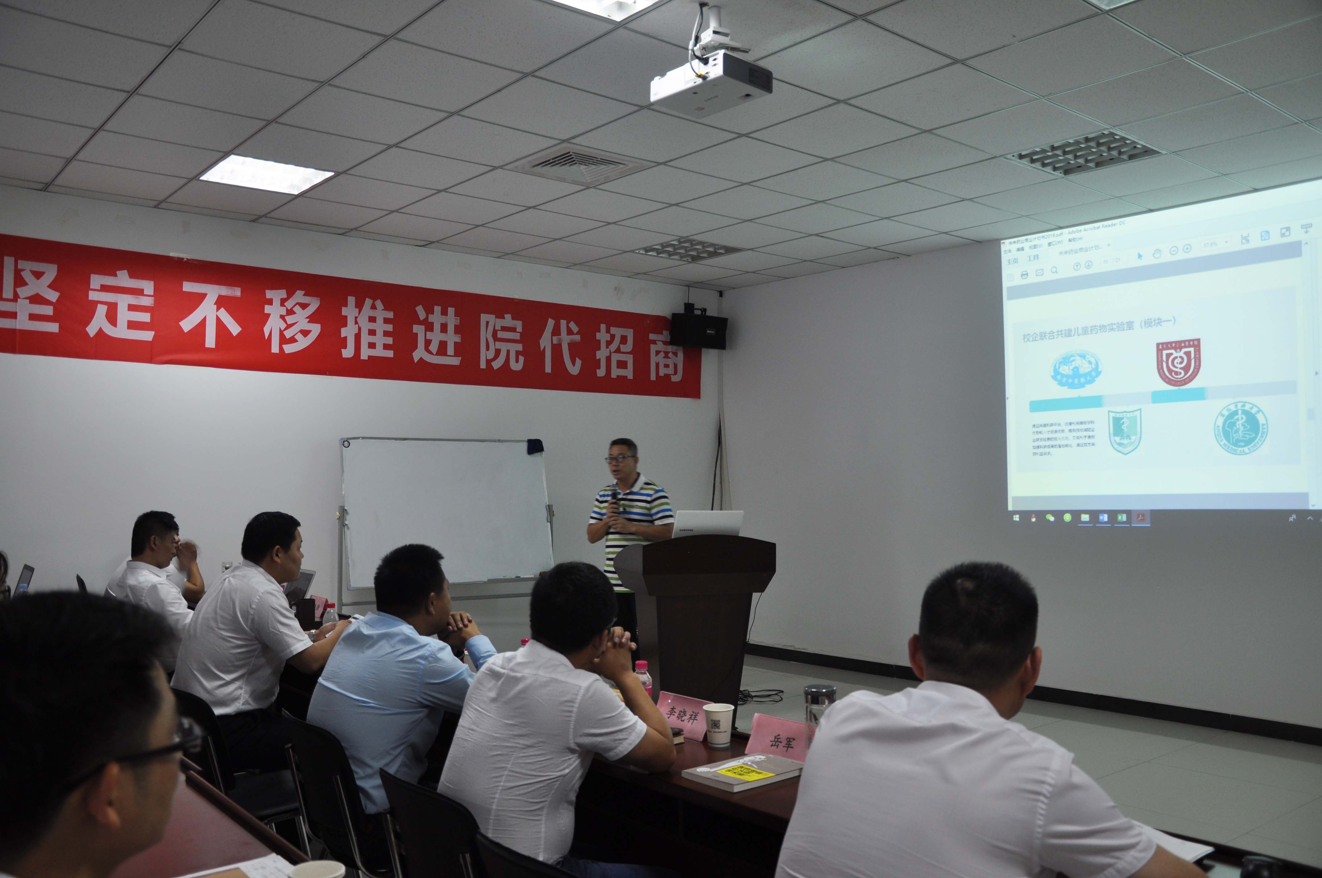 2018年7月8日-10日,西藏未来生物医药有限公司药业营销控制管理中心在合肥召开了2018年年中营销工作会议。本次会议以“提高服务,笃定信心,坚定不移推进院代招商;承压奋进,努力开拓,坚决完成公司下达指标”为主题,回顾了上半年市场形势和销售完成情况,明确方向,砥砺奋进,引领并指导业务人员完成全年的销售指标。公司董事长、总经理赵立军,公司副总兼药业营销中心总经理王有军、各事业部总监、各省省区经理、推广专员等共计70余人参加了本次会议。