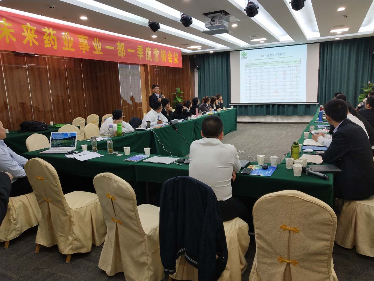 随后营销管理部郭信经理对一季度全国各省的动销数据以及完成率等进行了分析;政府事业部徐丙万总监汇报了各省医保信息的情况,并督促各位省区经理一定要积极跟进各地的最新医保结果;商务管理部徐明龙总监对各地的开户商业数量和一级商业渠道等对省区经理提出了相关的要求。