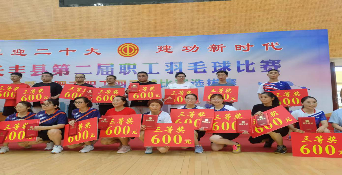 2022年7月20日上午,长丰县第二届职工羽毛球赛开幕式在县体育馆如期举行,合肥未来医药工会主席钟方成,带领工会委员会成员,以及未来医药营销部门、财务部门、行政部门参加本次开幕式。